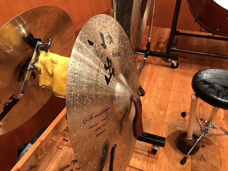 自分の、また仲間達の楽器や身体に配管内の錆や吊り物の汚れが混じった汚水が滝のように叩きつける様子を皆、「津波に飲み込まれたよう」、「地獄絵図のよう」な状況だったと振り返ります。