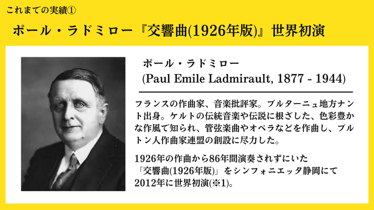 中でも、1926年に作曲されてから86年間演奏されずにいた、フランス近代の作曲家、ポール・ラドミローの『交響曲(1926年版)』の世界初演(2012年)(※1)はフランス音楽史にとっても重要なものとなりました。