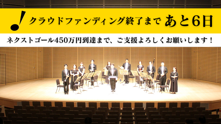 「シンフォニエッタ静岡|スプリンクラー事故から3年、優れた作品を繋ぐ」が募集終了まで残り6日となりました。みなさまからのあたたかいご支援のおかげですでに第一目標である300万円については到達しておりますが、ネクストゴール450万円を目指し、引き続きご支援を募集しております。既にご支援を頂きました皆様におかれましては、拡散にもご協力いただけますと幸いです。