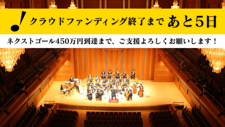 「シンフォニエッタ静岡|スプリンクラー事故から3年、優れた作品を繋ぐ」が募集終了まで残り5日となりました。みなさまからのあたたかいご支援のおかげですでに第一目標である300万円については到達しておりますが、ネクストゴール450万円を目指し、引き続きご支援を募集しております。既にご支援を頂きました皆様におかれましては、拡散にもご協力いただけますと幸いです。