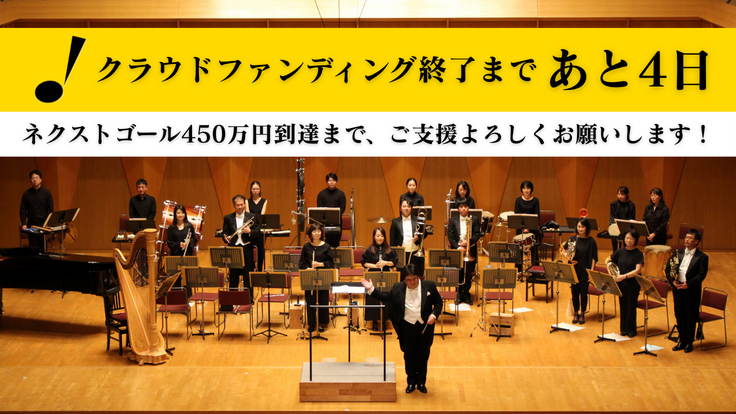 「シンフォニエッタ静岡|スプリンクラー事故から3年、優れた作品を繋ぐ」が募集終了まで残り4日となりました。みなさまからのあたたかいご支援のおかげですでに第一目標である300万円については到達し、ネクストゴール450万円を目指して引き続きご支援を募集しております。また、既にご支援を頂きました皆様におかれましては、ぜひ拡散にもご協力いただけますと幸いです。