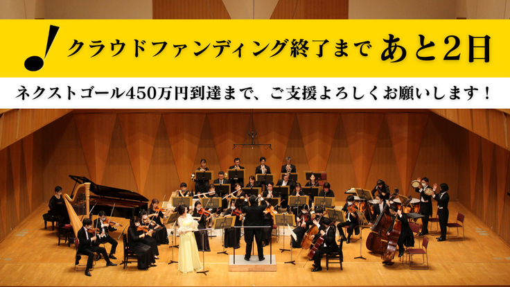 「シンフォニエッタ静岡|スプリンクラー事故から3年、優れた作品を繋ぐ」が募集終了まで残り2日となりました。みなさまからのあたたかいご支援のおかげですでに第一目標である300万円については到達し、ネクストゴール450万円を目指して引き続きご支援を募集しております。また、既にご支援を頂きました皆様におきましては、ぜひ拡散にもご協力いただけますと幸いです。