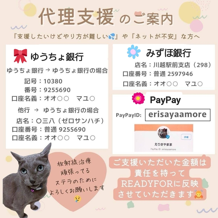 ステラの今後の治療費にあてさせていただけたらと思います。