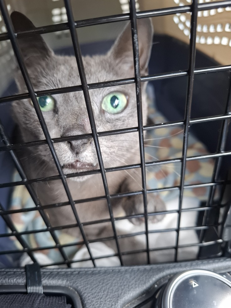 また帰りの車の中では、にゃあにゃあないていました。珍しいのです。