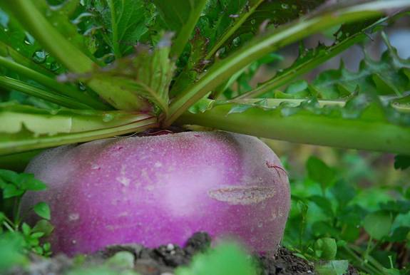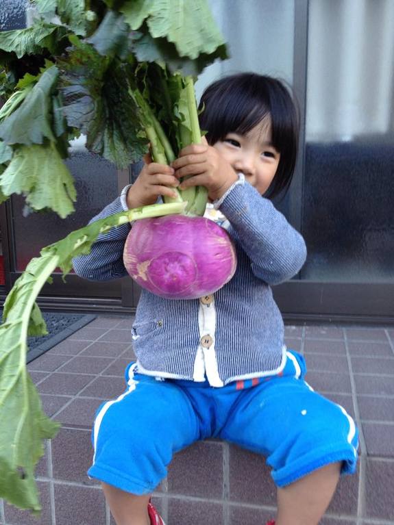 (カブを手にニッコリ。田村カブは子供の顔と同じくらいの大きさ。)