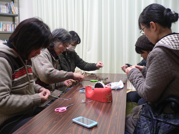 こどもが踊りの練習をしている間保護者は、バザーのための小物作りです。こどもの踊りに負けてられません!!