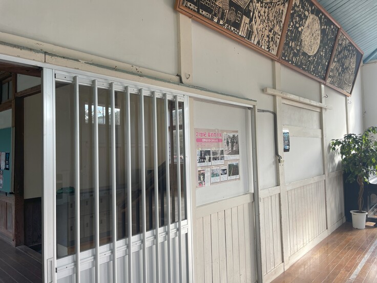 90年前の木造校舎ですから、現在の建築基準法に照らし合わせた必要な耐力壁もなく、端から端までが窓です