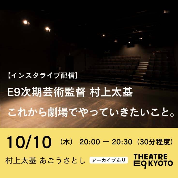 【インスタライブ配信】E9次期芸術監督 村上太基『これから劇場でやっていきたいこと』