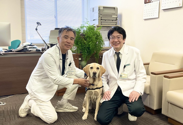 第一目標を達成した機会に、昨日、当院の山岸院長とファシリティドッグのアイビーが揃って、多摩総合医療センターの樫山鉄矢院長のお部屋にうかがい、病院からの大きなご寄付に対する御礼をお伝えしました。樫山院長からは、当プロジェクトの第二目標に向けた新たな挑戦に、さらなる激励をいただきました。現在14ある都立病院も一丸となって、本プロジェクトを支援して下さっていることを、大変心強く感じました。アイビーも、未来あるこどもたちをしっかり見つめるような優しくも力強い目線で、一緒に写真撮影しました。