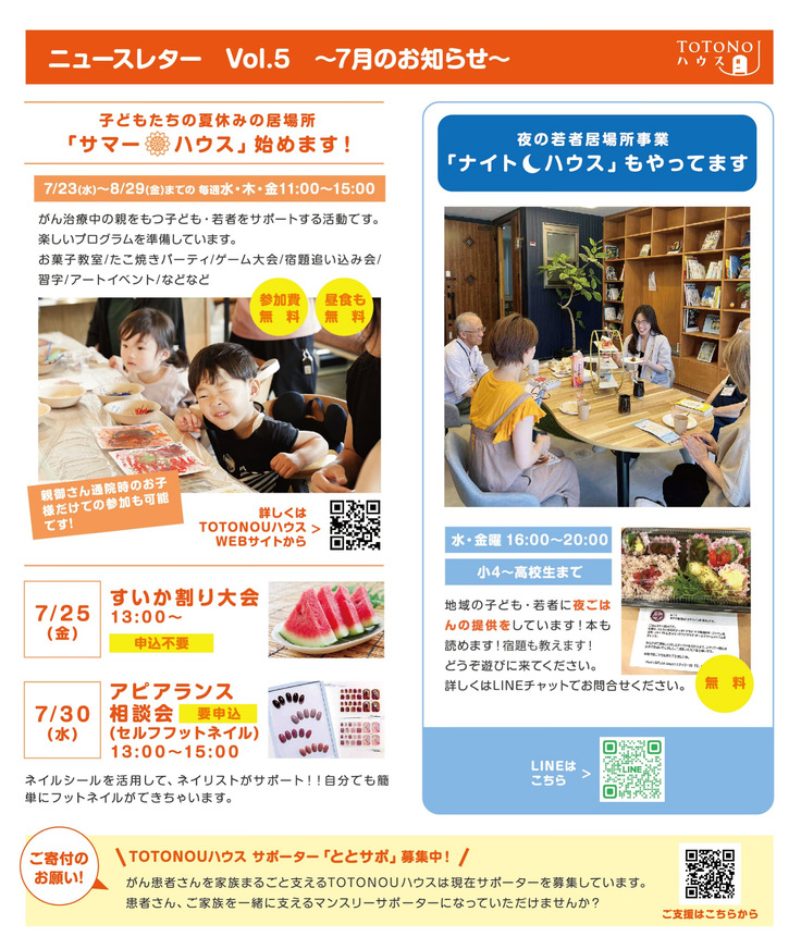 がん患者さんを家族まるごと支えるTOTONOUハウスサポーター募集
