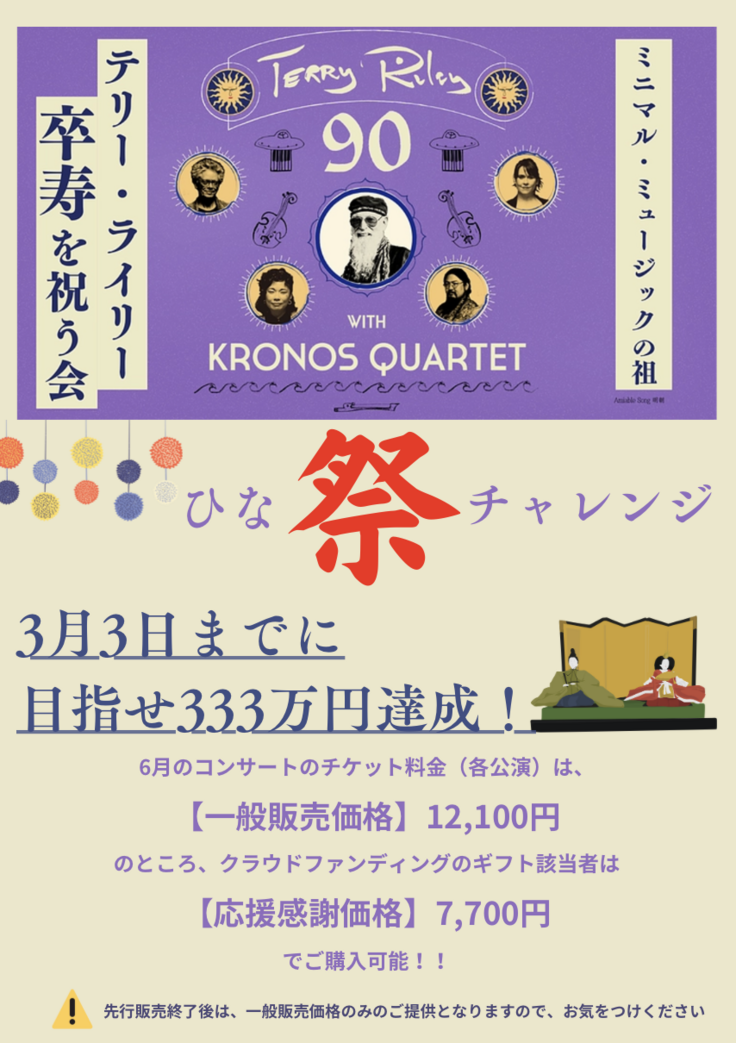 こんばんは、テリー・ライリーMatsuri2025事務局です。