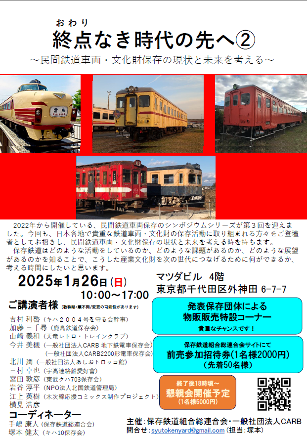 今週日曜日には、デハ1002号(2040号)の故郷・末広町で、鉄道車両保存のシンポジウムが開催予定です。