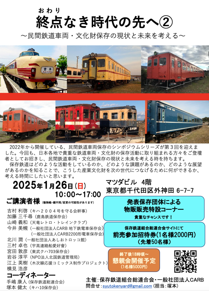 明日26日はいよいよ、鉄道車両保存イベント「終点なき時代の先へ②〜民間鉄道車両・文化財保存の現状と未来を考える〜」が開催されます。