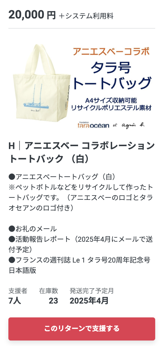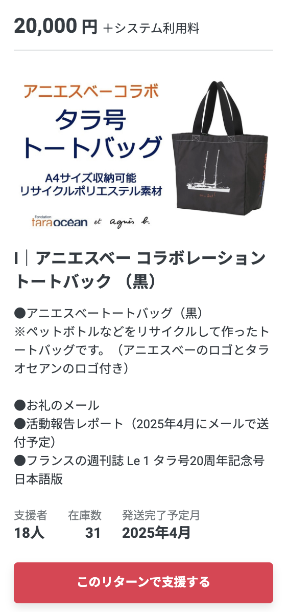 今回は、リターンの中からアニエスベーとタラ オセアンのコラボレーショントートバッグを紹介します。
