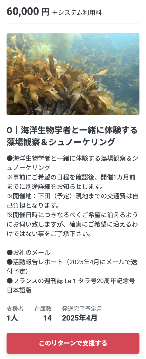 ぜひ、この貴重な体験をご支援のリターンの一つとしてご検討ください。
