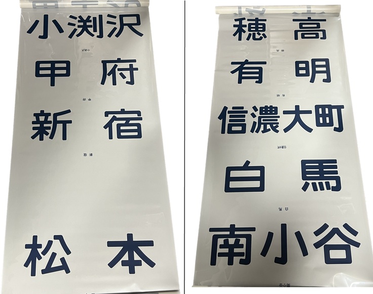 このように様々な表示が入っております。しかし国鉄からJRになってから、車体側面に「行先表示器」の取付改造が行われた為、この前頭幕を使用した行先表示を使用した運行は次第に縮小、このクハ115-1106が長野地区にやってきた2002年にはほぼ「普通」「快速」などの種別部分しか使用されておりませんでした。(稀に行先を表示したこともあるようです)