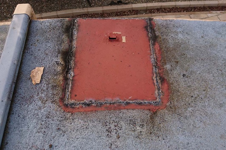 ②屋根の雨漏りを防ぐための鉄板溶接と全面再塗装