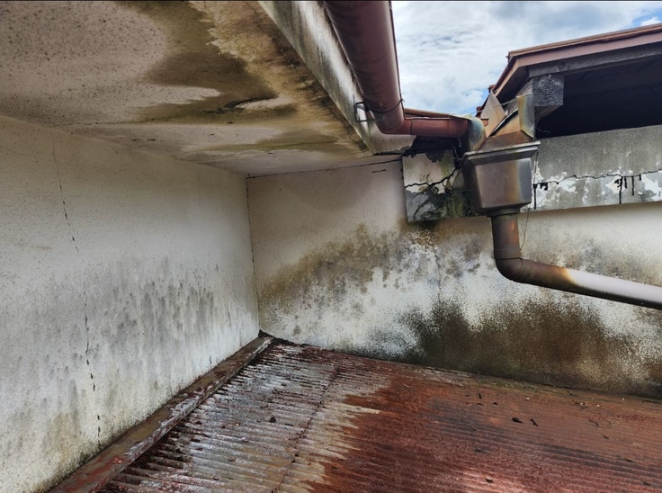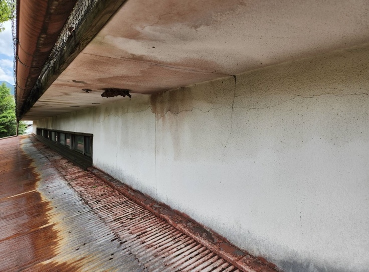 大講堂は、7年前に雨漏りが発生し、昨夏8月の台風により被害が拡大。以後、通常の雨や夕立でも雨漏りし、もう応急措置ではどうにもできず、待ったなしで、雨漏りを止める即急な大規模修理が必要となりました。