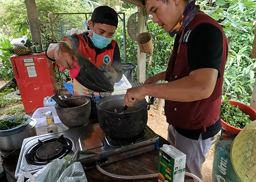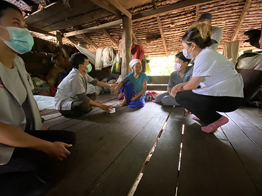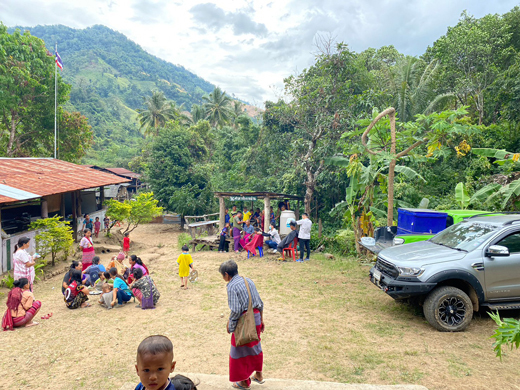 最悪な道路をどうにか走らせ約3時間かけ山岳民族の村に到着。山地集落へ行く際は、村に電気や水道もないために、病院スタッフが水や食料を持参し食事を作りながら、訪問診療を行います。