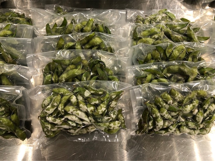 登熟した黒豆は最終的に黒くなるのですが、黒くなる直前に収穫したのがこの「丹波黒枝豆」です。
