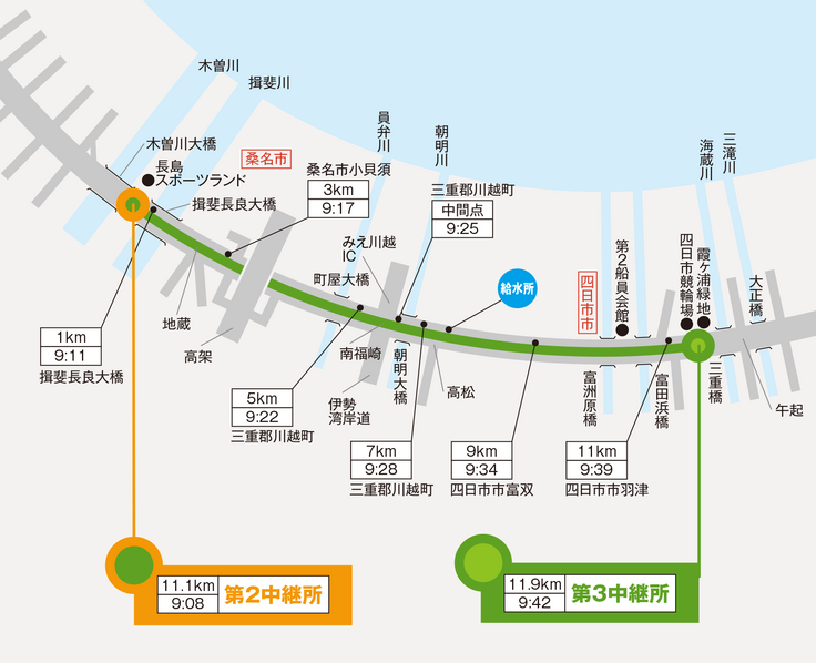 4) 出走区間:日本学連選抜チーム3区(桑名市~四日市市 11.9km)(9時10分頃スタート予定)