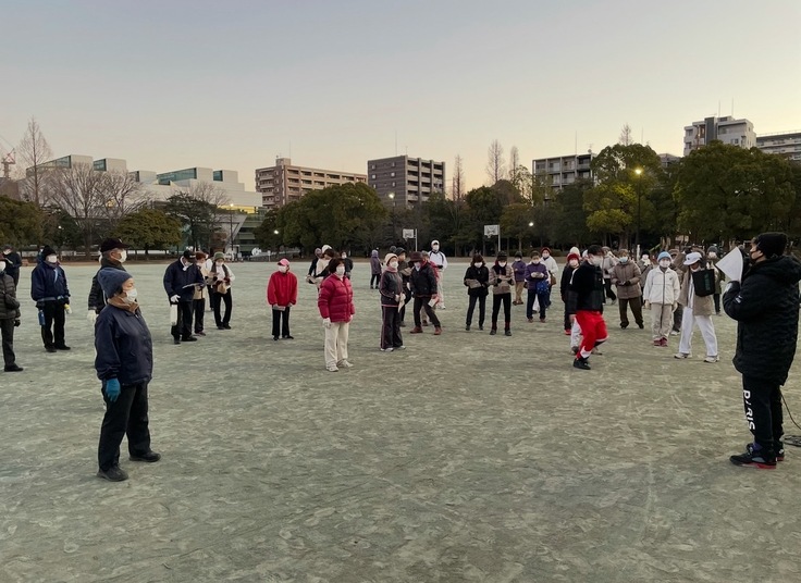 そんな外出自粛の中でも、毎朝早朝に高齢者の皆様は元気に公園に集まりラジオ体操をやっておられる事を知り、