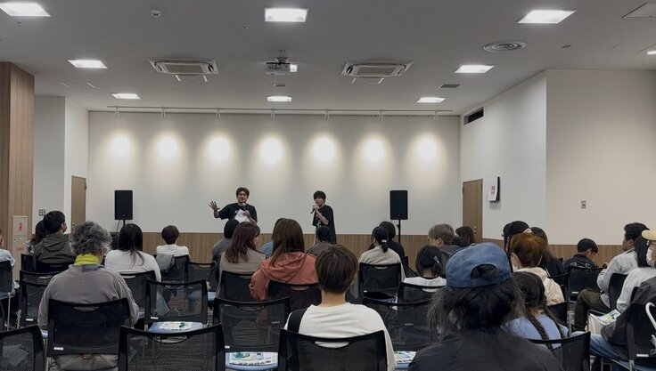 あいにくの雨で、野外ステージから室内の多目的ホールへ。