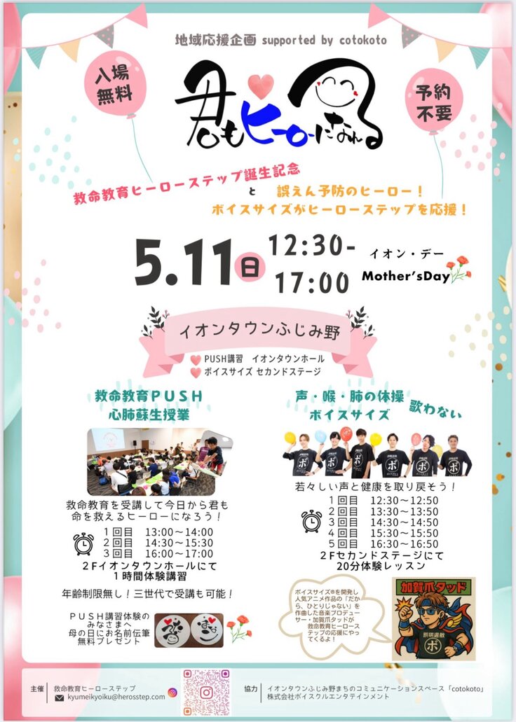 今週末「母の日」は同じイオンタウンふじみ野にてヒーローステップに出演します!