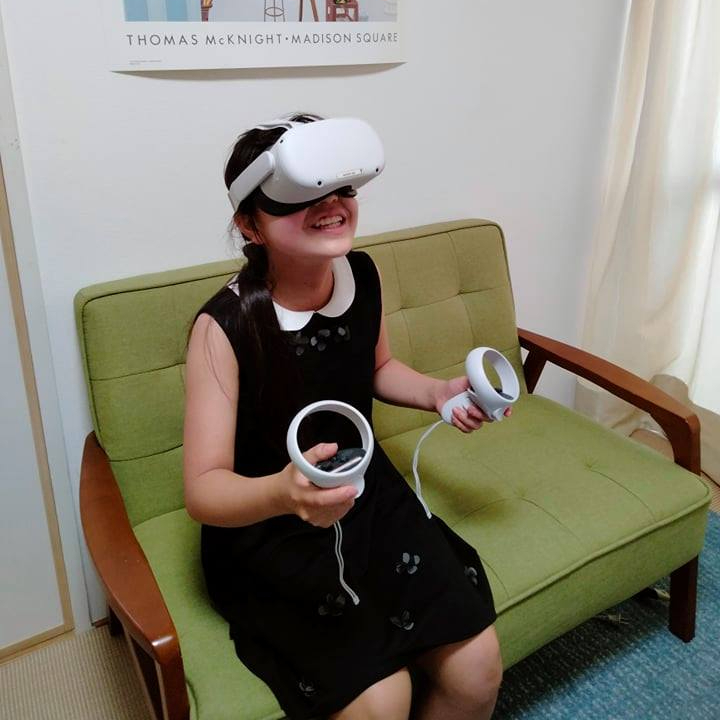 こちらは、モニターのお一人、小学5年生の方です。お母さんが【VRトリップ】を楽しんでいるのを見て、「お母さんと一緒に旅行に行く」ことからスタートをして、すっかりハマっていただいています。こんな笑顔を一人でも多くの方に提供したいと思っています。