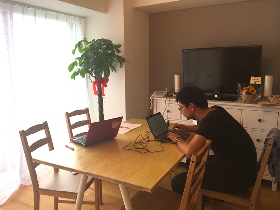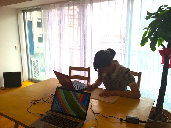 インターンの林さんにお世話になりっぱなしです。彼女は、サイト内容をノートに書き込み、まとめています。