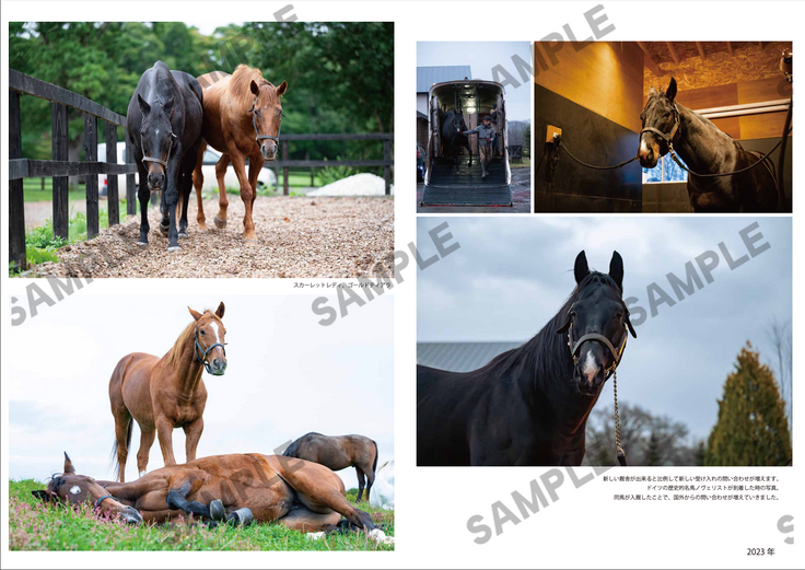 到着後すぐに牧柵を破壊するタニノギムレットに対して「やばいです、ひたすら牧柵を壊していきます。」というスタッフ間の連絡、ブロードアピールが亡くなった数日後の虹、アキュート画伯誕生の裏側など・・・完成したサンプルを見て、これまでの日々を思い出し、涙を流すスタッフもいたほど、私たちの思いが詰まった内容になっています。