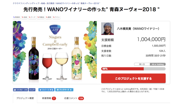 これまで124人の方にご予約いただき、1,004,000円のご支援をいただいたおります。本当にありがとうございます!!