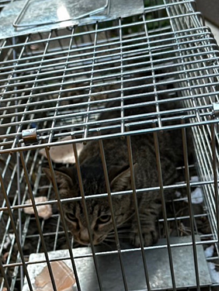先日、地域で保護を進めていた男の子猫が、ついに捕獲器に入りました!