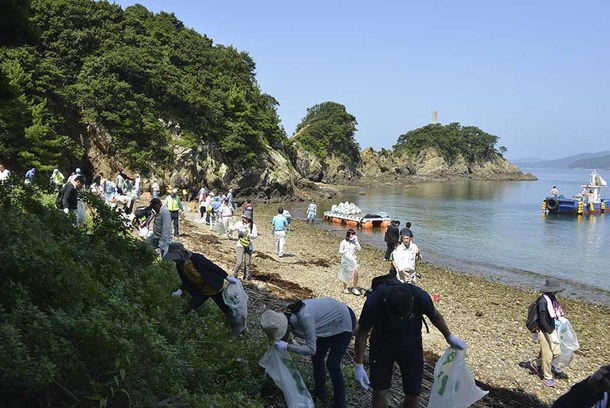 海の日に、諏訪崎のクリーン作戦。皆で拾う。