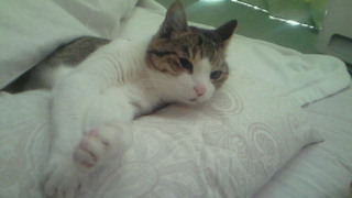 (3年前の愛猫。お昼寝から目覚めてご機嫌ななめの様子。)