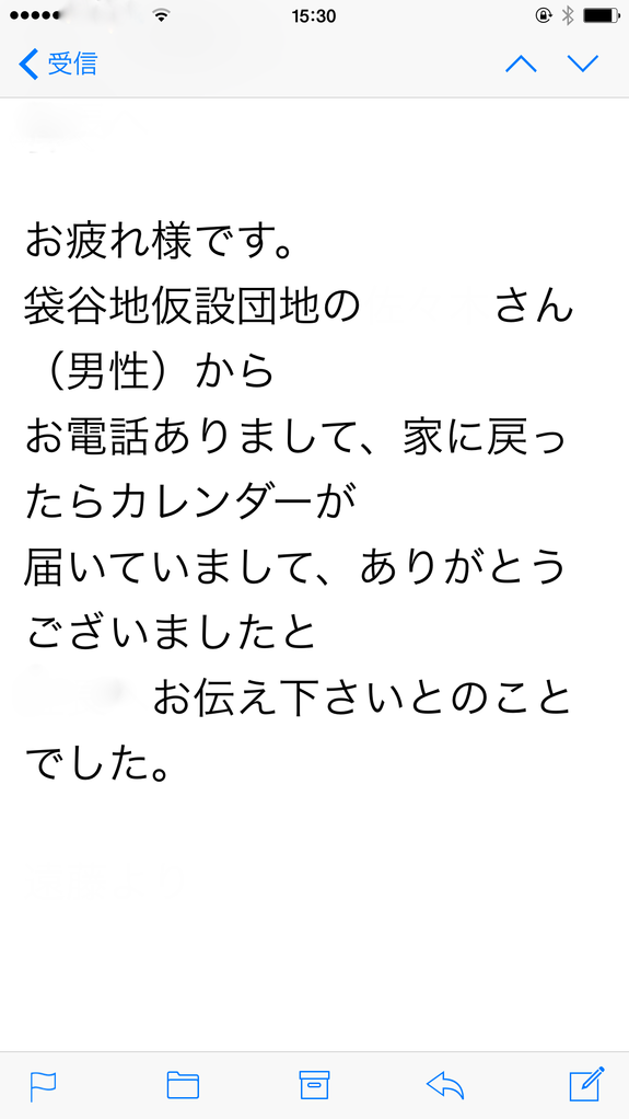 自分の業務に戻り、移動中、スタッフからメールがきました。