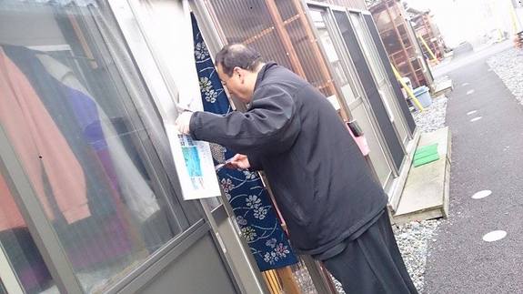 自分はこの坂の下の小学校に通っていたので、ここでも野球をしたり、いろんな遊びをした想い出の場所です。1件、1件、お渡ししてきました。