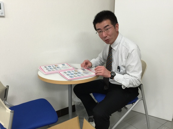 (お話しをしながら配布するモウリ。これが大事なんですー!)