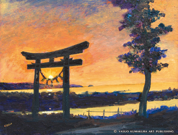 (絵画カレンダーの1月の絵/日和山からの朝日)
