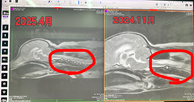 その後2月中旬から状態が改善し始め一旦手術は延期になり今回の再度のMRIにつながって
