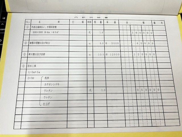 改修できなければ劣化が進んでゆくだけなのですが、防水塗装がされてなかったため追加がかなり入ってます。