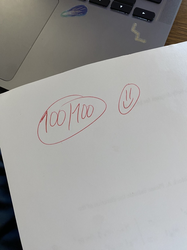 今学期1回目の中間テスト、物理で100点取れました!!クラストップ13%に入れました!