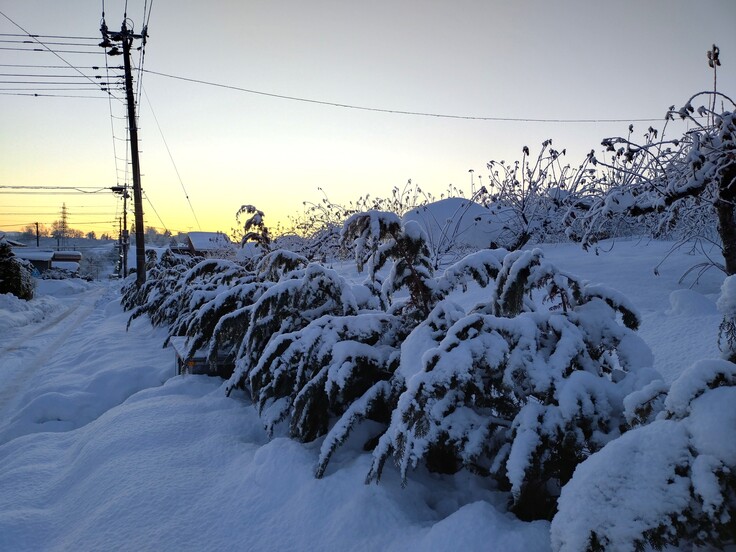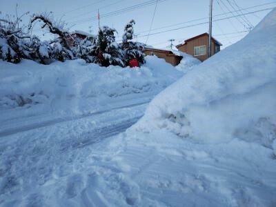 ニュースで報道されているとおり、年末からの大雪を受け、青森県では12年ぶりに1/4県豪雪対策本部が設置され、1/7災害救助法が適応されました。除雪作業中のケガだけでなくお亡くなりになる事故も発生しており胸を痛めています。新年は「年末年始は雪かきして終わった」というやり取りから始まりました。私の住む地域もそうですが、除排雪が間に合っていない地域もあり、移動の困難、建物への被害の心配と隣り合わせの日々が続いています。集落単位の停電、数日にわたる電車の運休もあり、いつもどおりの生活がままならない。林檎畑では幹が真ん中から割れたり、弘前公園のお堀の松が真横に倒れたり、雪の中の生木の色が痛々しく、目をそらしたくなる光景です。