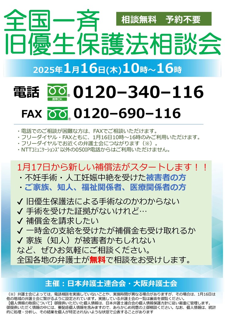 【New 1月16日(木)全国一斉 旧優生保護法相談会】