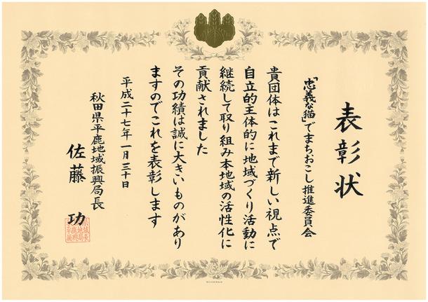 県の顕彰事業でまちおこしに対する功績が認められ表彰をうけました。