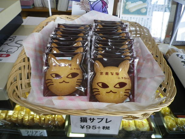「忠義な猫でまちおこし推進委員会」では、忠義な猫にちなんだ歌のCDや紙芝居を制作したり、民話の専門家に昔語りに仕立ててもらい各種イベントで披露しました。また、観光土産に招福猫サブレの商品開発もしました。
