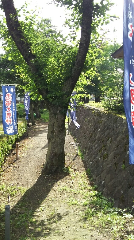この写真は忠猫の碑へと続く通路です。手前が坂になっていて、