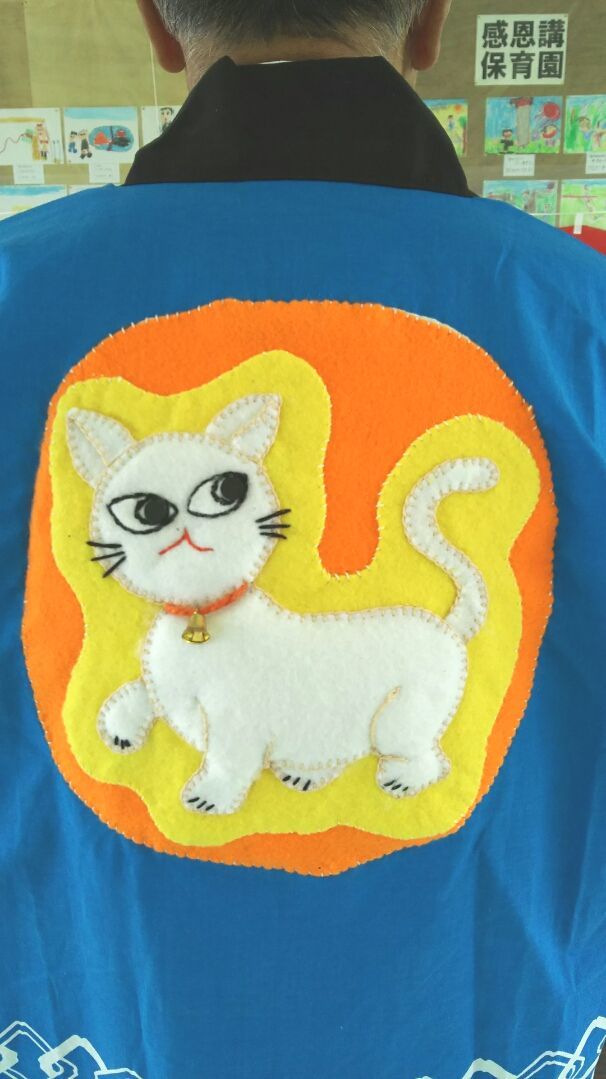 先日、忠義な猫のアップリケの半纏(はんてん)を