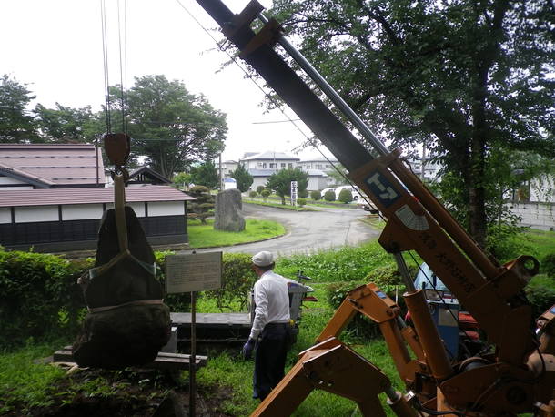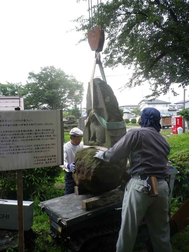 公園にある忠義な猫の碑の仮移設作業をしてくれました。
