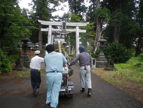 公園に隣接する神社さんのご厚意で境内に仮安置いたします。